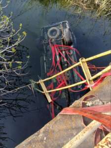 Το σημείο που έπεσε το αυτοκίνητο μέσα στο ποτάμι ήταν αρκετά βαθύ τόσο ώστε να βυθιστεί όλο το όχημα κάτω από το νερό και μάλιστα ανάποδα.