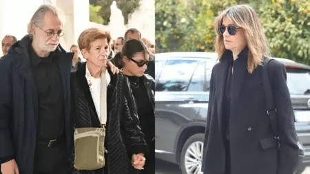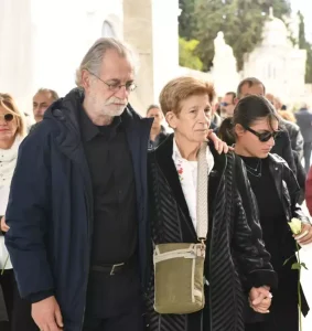 H σύζυγoς του σκηνοθέτη Μαρία Μανουσάκη βρίσκεται από νωρίς στο νεκροταφείο για το τελευταίο αντίο στον αγαπημένο της. Όπως είχε αναφέρει πρόσφατα: «Από την αρχή που γνωριστήκαμε, από την πρώτη ημέρα μέχρι την αγκαλιά που δώσαμε την τελευταία ημέρα. Ανανεώσαμε το ραντεβού μας για την επόμενη μέρα και με έστησε, μετά από τόσα χρόνια. Δεν ξέρω τι παραπάνω θα ήθελα να του πω, απλώς αγκαλιαστήκαμε, φιληθήκαμε και είπαμε ραντεβού αύριο. Με έστησε στο ραντεβού μετά από τόσα χρόνια…».