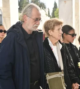 Οικογένεια, φίλοι και συνεργάτες συγκεντρώνονται στο Α’ Νεκροταφείο Αθηνών για να αποχαιρετήσουν τον Μανουσάκη Μανουσάκη, έναν από τους πιο αγαπητούς και σπουδαίους σκηνοθέτες της ελληνικής τηλεόρασης και του κινηματογράφου.