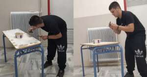 Όπως διαβάζουμε στο tirnavospress.gr, αυτό το αγόρι έχει επιλέξει στα κενά μεταξύ των μαθημάτων του, να επισκευάζει τα θρανία του σχολείου του. Ο Παύλος έχει επιλέξει και είναι ιδιαίτερα σημαντικό σαν κίνηση για ένα νεαρό παιδί στον ελεύθερο χρόνο του, που είναι εξαιρετικά λιγοστός, αντί να κάνει κάτι άλλο, έχει επιλέξει να επισκευάζει τα θρανία στο σχολείο του.