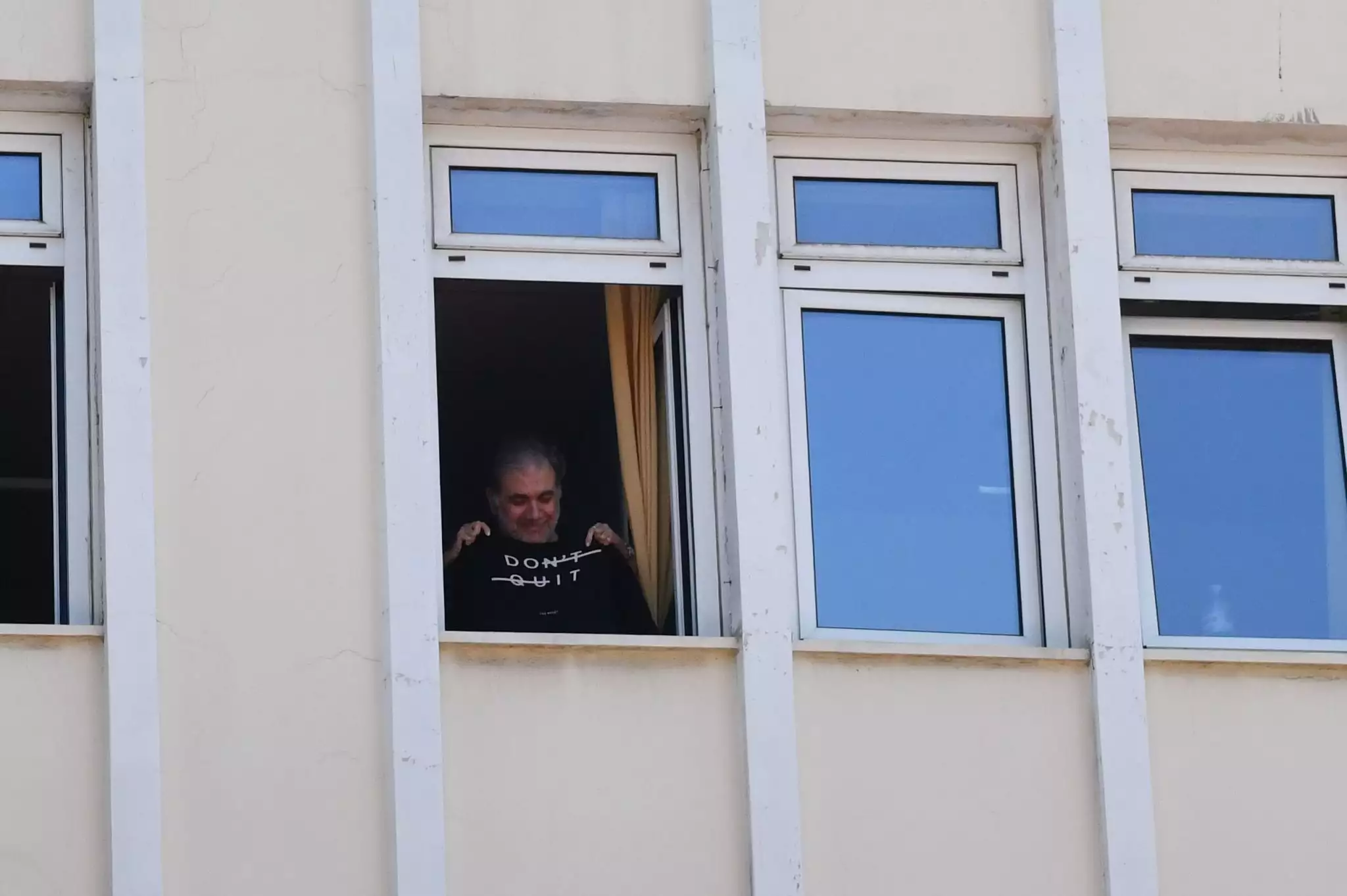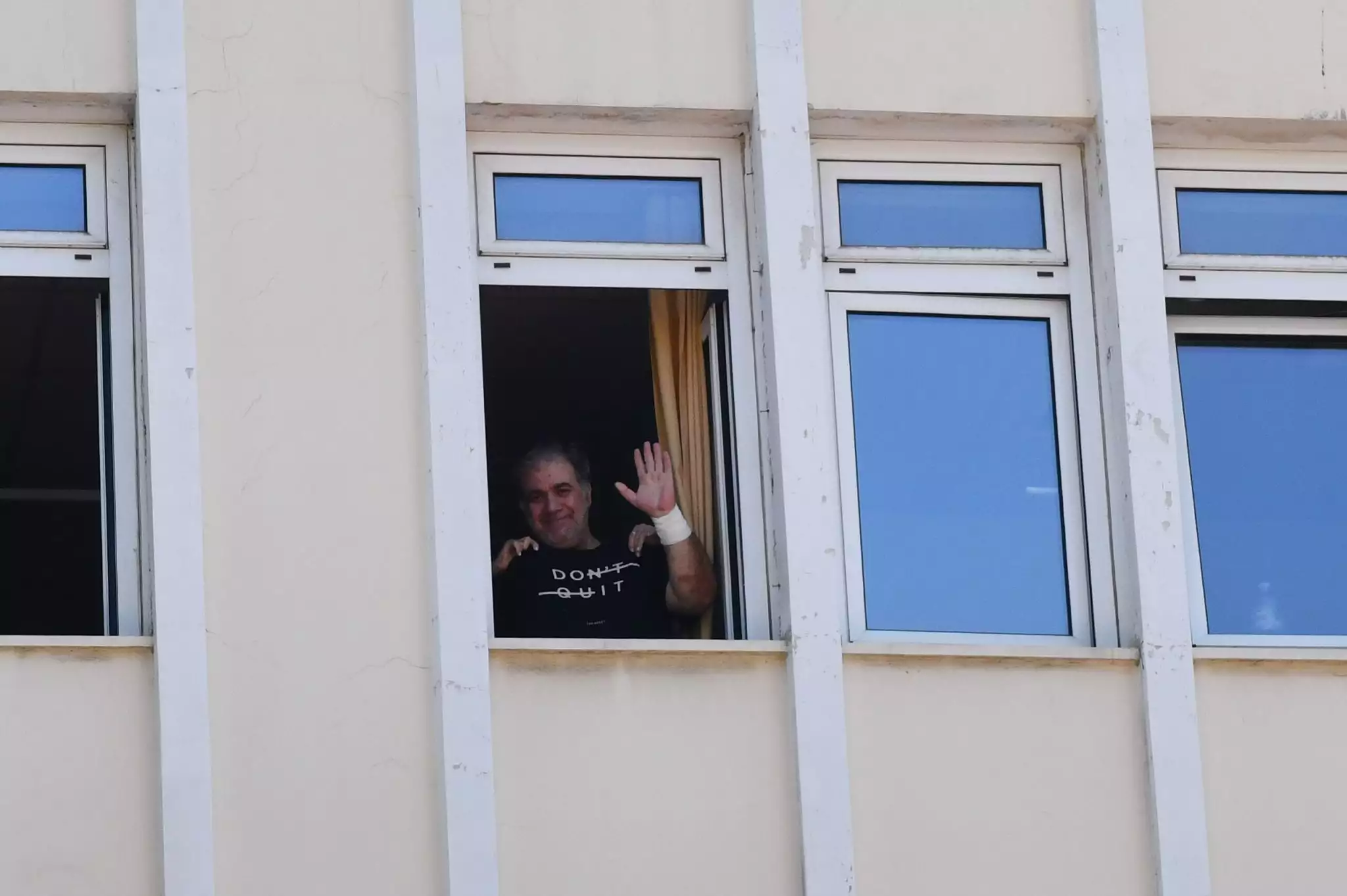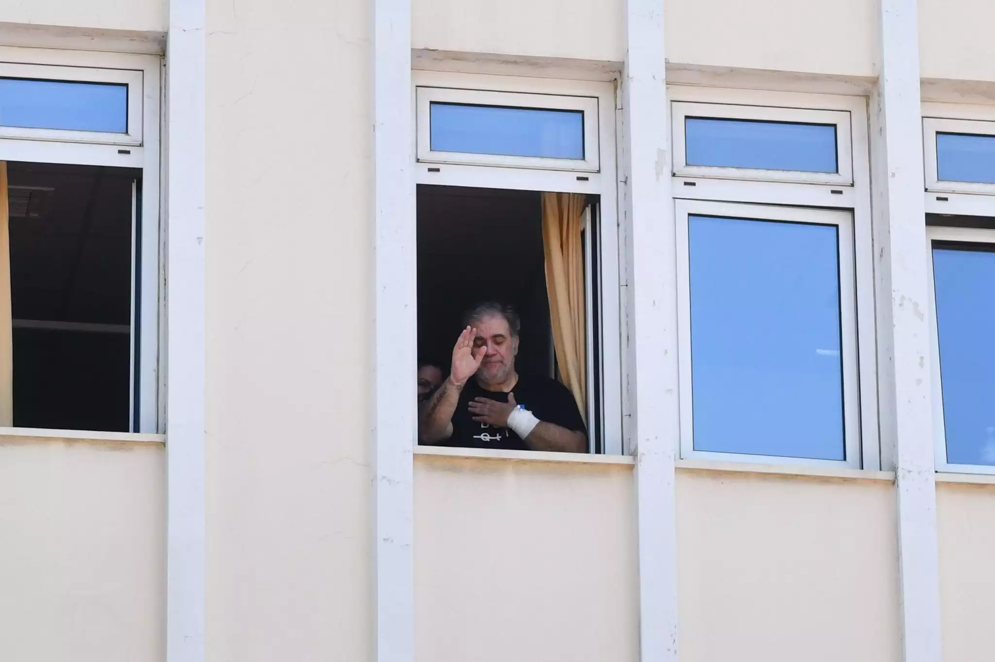 Νωρίτερα, ο Δημήτρης Σταρόβας είχε χαιρετήσει δημοσιογράφος και φωτορεπόρτερ από το παράθυρο του νοσοκομείου.