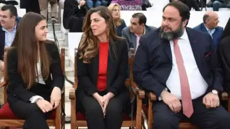 Η σύζυγός του Αθανασία Μαρινάκη, κάθισε στις θέσεις μαζί με τις κόρες της ενώ ο γιος του παρακολουθούσε όρθιος τον αγώνα.