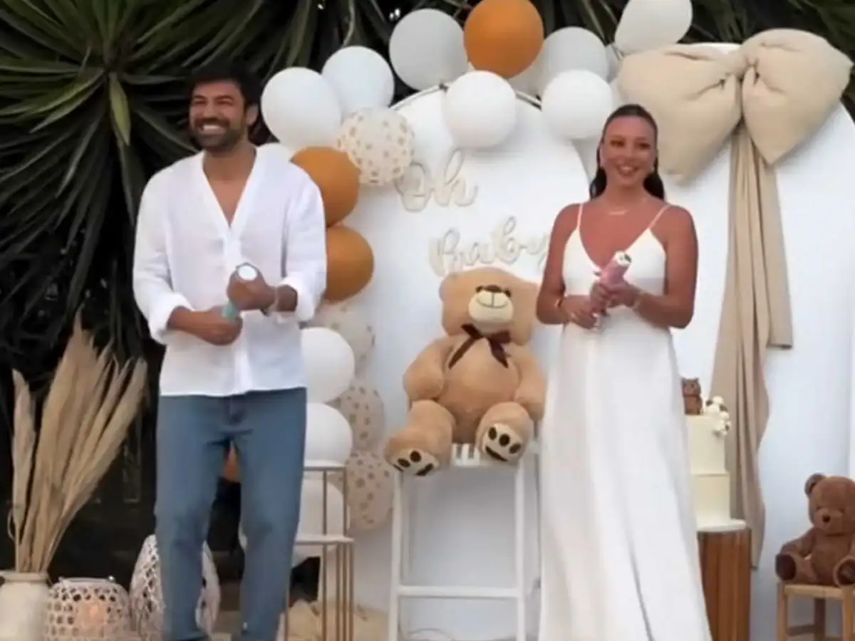 Το πάρτι πραγματοποιήθηκε σήμερα (Κυριακή 13/7), με τους καλεσμένους να δίνουν το παρών φορώντας ρούχα σε ροζ ή μπλε αποχρώσεις, δείχνοντας τι πιστεύουν πως θα είναι το φύλο του μωρού. Τελικά θα είναι κοριτσάκι! Όταν τελικά βγήκε ο ροζ καπνός, η συγκίνηση ήταν διάχυτη, με τους δύο μέλλοντες γονείς να αγκαλιάζονται και να φιλιούνται τρυφερά υπό τις επευφημίες των φίλων και συγγενών τους.