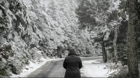 Αραιές νιφάδες πέφτουν και στον Χορτιάτη, όπου όμως έβρεχε το βράδυ και η υγρασία δεν επιτρέπει στο χιόνι να πιάσει.