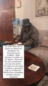 Συγκεκριμένα ο 35χρονος επιχειρηματίας όπως έγραψε στα stories του στο Instagram, εντόπισε κατά τη διάρκεια της βόλτας του τον κ. Ηλία από τις Σέρρες, o οποίος είναι άστεγος.