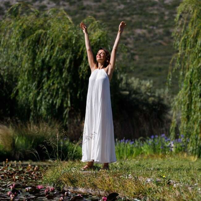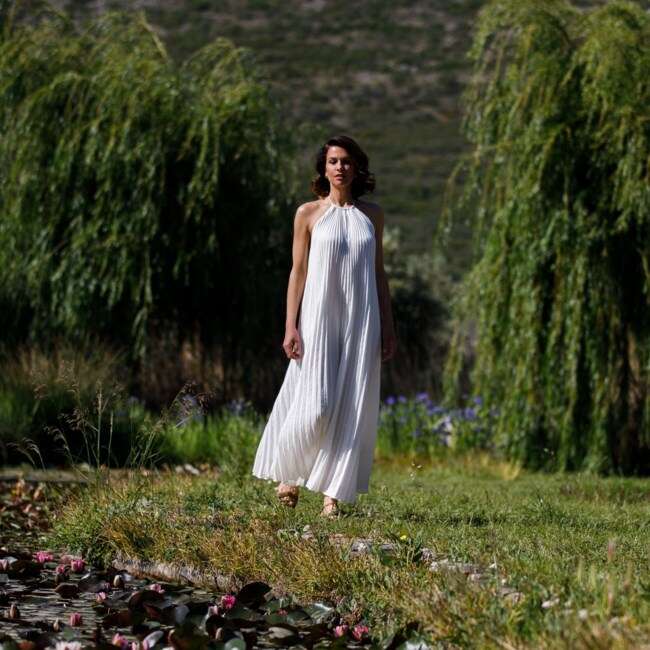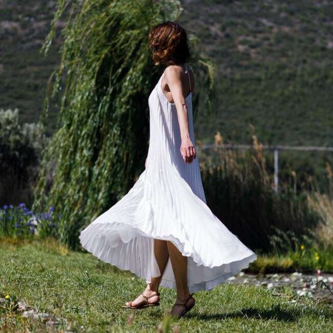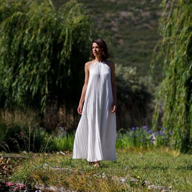 Η Τζίνα Αλιμόνου, που αγαπάει τη μόδα και προσέχει πάντα τις εμφανίσεις της, δημοσίευσε σειρά φωτογραφιών στο instagram, φορώντας ένα λευκό φόρεμα σε αρχαιοελληνικό στιλ.