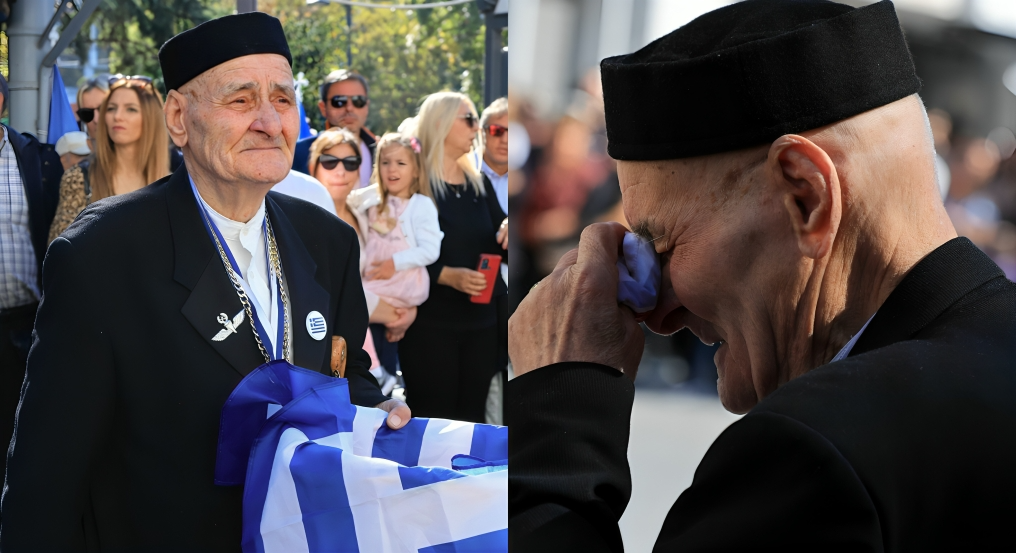 Στην παρέλαση της Λάρισας, ο ήλιος φώτιζε τα πρόσωπα των θεατών, αλλά η προσοχή όλων τραβήχτηκε από μια ιδιαίτερη εικόνα: έναν ηλικιωμένο άντρα, με την ελληνική σημαία να κυματίζει περήφανα στο χέρι του. Τα μάτια του ήταν βουρκωμένα, και το πρόσωπό του, γεμάτο ρυτίδες, διηγούνταν ιστορίες μιας ζωής γεμάτης αγώνες και θυσίες.