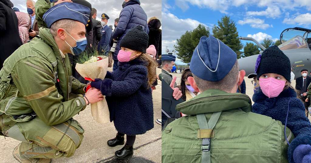 Στην τελετή υποδοχής των έξι Rafale στην 114 πτέρυγα μάχης στην Τανάγρα, βρίσκονταν και οι οικογένειας των πιλότων.
