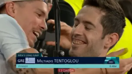 Σήμερα ο «βασιλιάς των κρίκων» βρέθηκε στο Stade De France δίπλα από τους προπονητές και τους ανθρώπους του Τεντόγλου και πανηγύρισε μαζί τους το (επίσης) ιστορικό μετάλλιο του «βασιλιά του μήκους» καθώς έγινε ο πρώτος Έλληνας που κατακτά back to back χρυσό μετάλλιο στον στίβο.