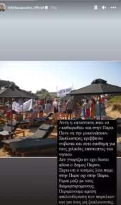 Ο Λάκης Λαζόπουλος μέσω του λογαριασμού του στο Instagram δήλωσε ότι βρίσκεται δίπλα στους διαμαρτυρόμενους στην Πάρο, όπου ζητούν να απελευθερωθούν τα σημεία γύρω από την παραλία.