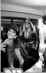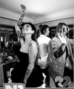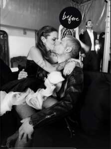 Το φόρεμά της ήταν μινιμαλιστικό, με στραπλές λεπτομέρειες και μίνι μήκος, με ένα μπούστο που αγκάλιαζε τέλεια το σώμα της και μια εντυπωσιακή μίνι φούστα με λουλούδια από οργάντζα. Για το σύνολό της, επέλεξε μαύρο διχτυωτό καλσόν με στρας και σατέν γόβες με λαμπερή αγκράφα-φιόγκο. Τα μακριά της μαλλιά ήταν χτενισμένα σε wet look, ενώ φορούσε ένα ζευγάρι σκουλαρίκια καρδιές.
