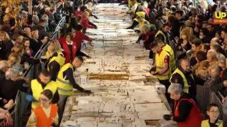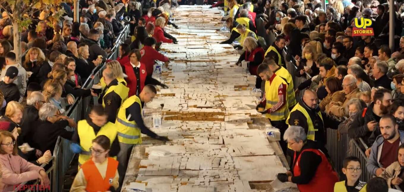 Σε μια γιγαντιαία βασιλόπιτα μήκους 78 μέτρων και 9 τόνων, που έσπασε όλα τα ρεκόρ, μετατράπηκε σημαντικό μέρος του μεγαλύτερου πεζόδρομου της χώρας, στο Περιστέρι.
