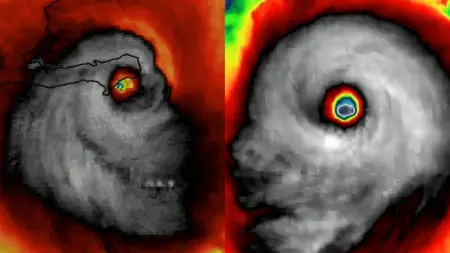 O Stu Ostro μετεωρολόγος στο Weather Channel, μοιράστηκε την φωτογραφία στο X, εμφανίζοντάς την δίπλα σε μια παρόμοια εικόνα του τυφώνα Μάθιου το 2016. Ο τυφώνας Μίλτον φαινόταν σαν να κοιτάζει πίσω, με ένα ανατριχιαστικό χαμόγελο, καθώς στροβιλίζεται στον Κόλπο με κατεύθυνση προς τη Φλόριντα.