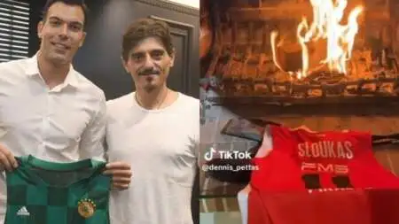 Δεν το πήρε ψύχραιμα: Οπαδός του Ολυμπιακού άναψε το τζάκι εν μέσω καύσωνα για να κάψει τη φανέλα του Σλούκα