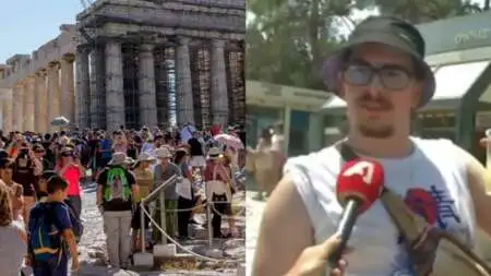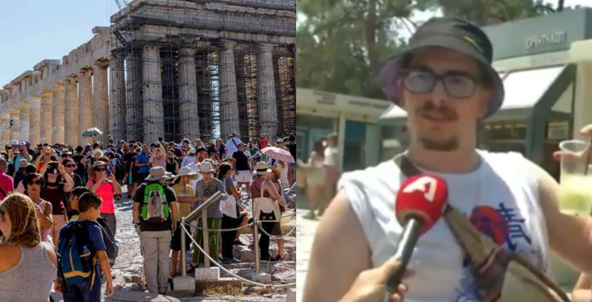 «Εδώ έχει 40 βαθμούς οπότε χρειαζόμαστε κρύο νερό. Υπάρχει μόνο αυτό και κάνει 5 ευρώ» προσθέτει άλλος τουρίστας.