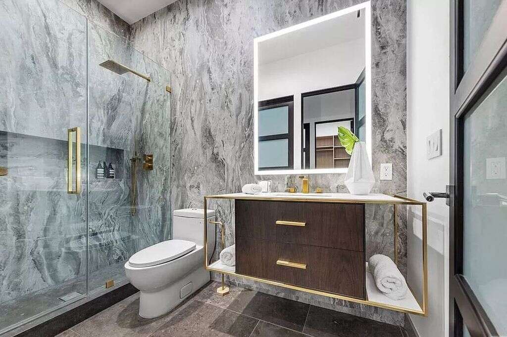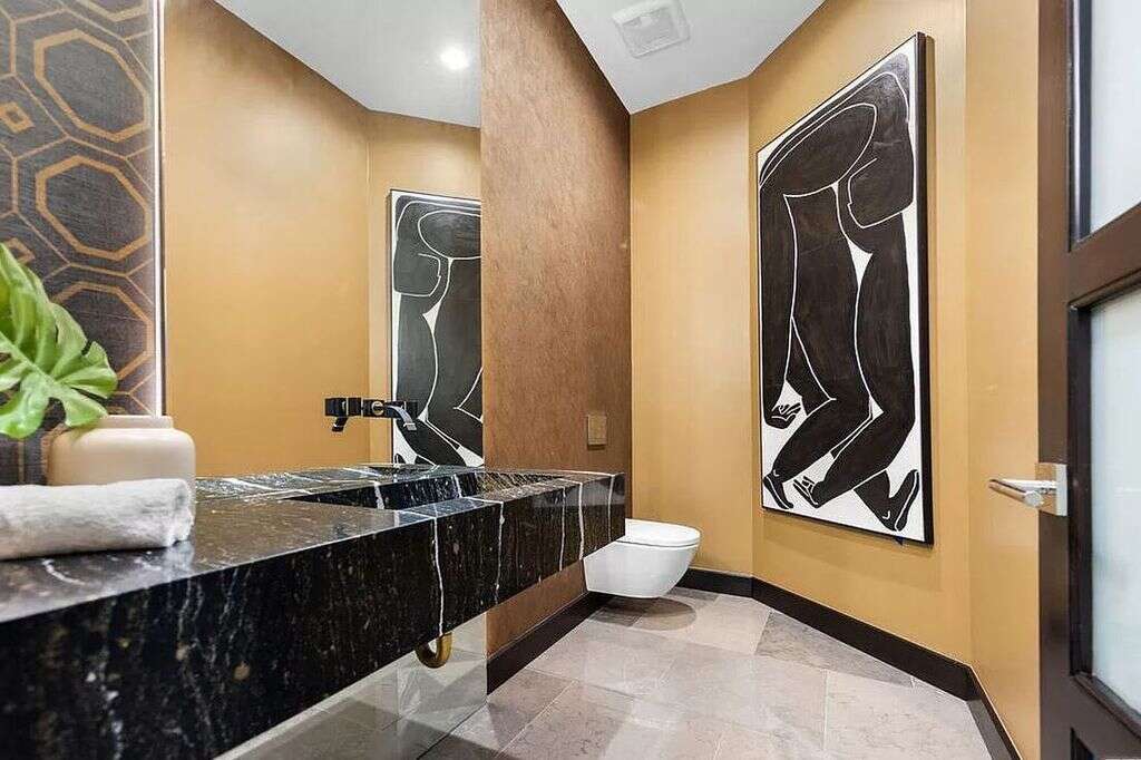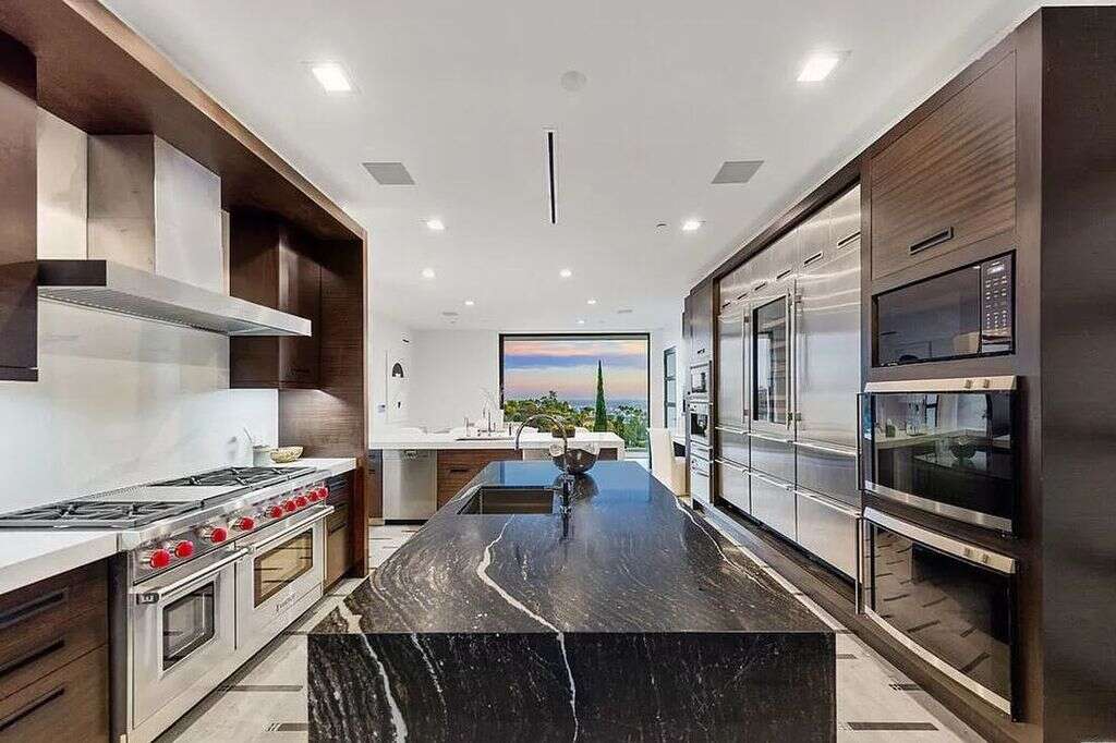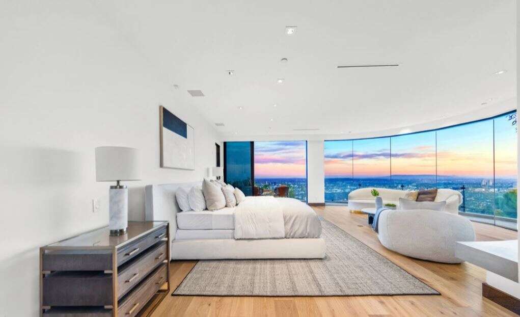 Το master υπνοδωμάτιο βρίσκεται στον πάνω όροφο, ενώ στα χαμηλότερα επίπεδα υπάρχουν τέσσερα ακόμα υπνοδωμάτια. Το σπίτι διαθέτει πισίνα και σπα καθώς και μεγάλο κήπο με θέα.