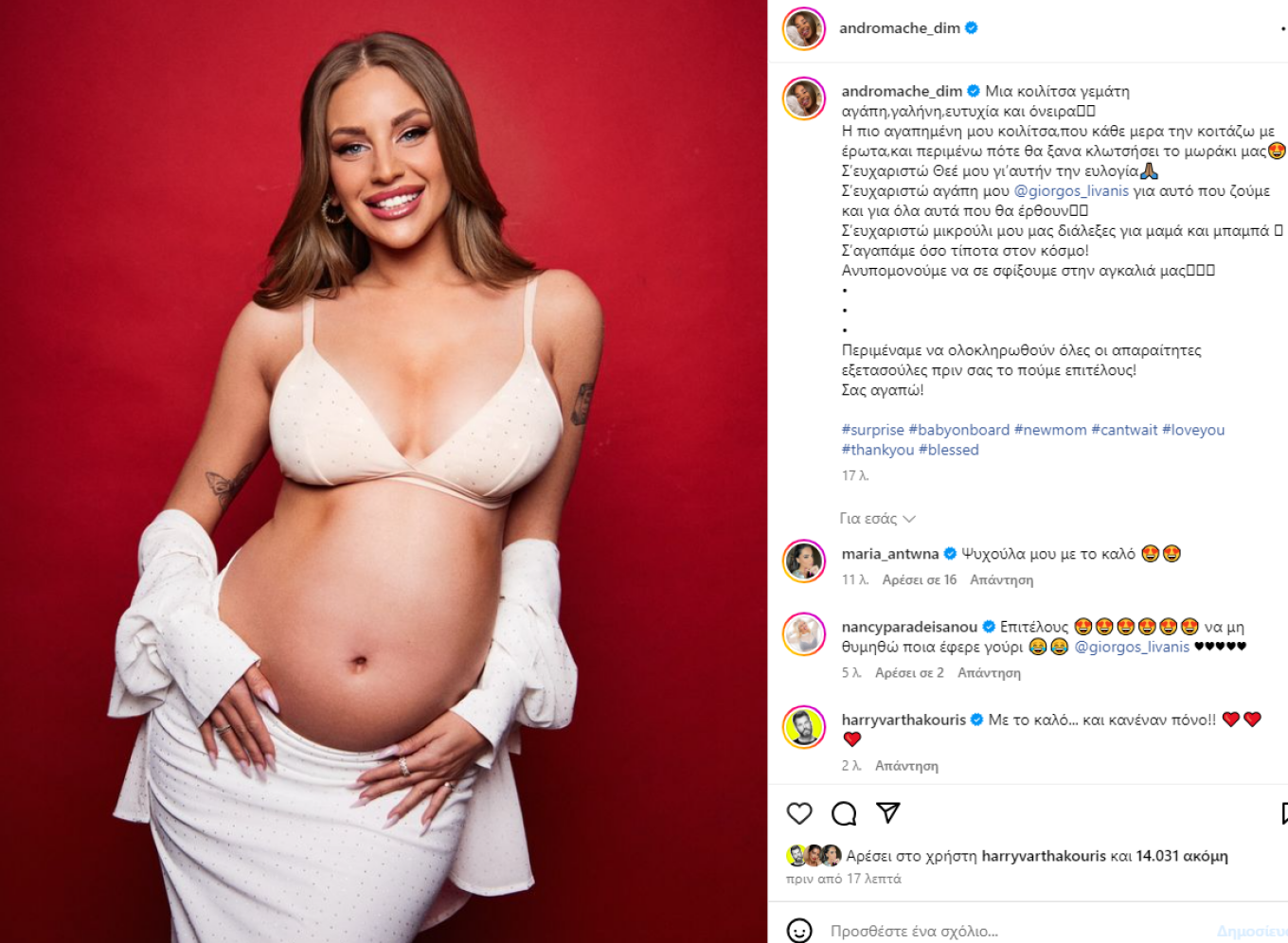 Η σύντροφός του, Ανδρομάχη, χρησιμοποίησε το προσωπικό της προφίλ στο Instagram για να μοιραστεί τα ευχάριστα νέα με τους followers της. Αναρτώντας μια φωτογραφία που δείχνει τη φουσκωμένη κοιλιά της, αποκάλυψε ότι περιμένει το πρώτο τους παιδί, με τον γνωστό τραγουδιστή.