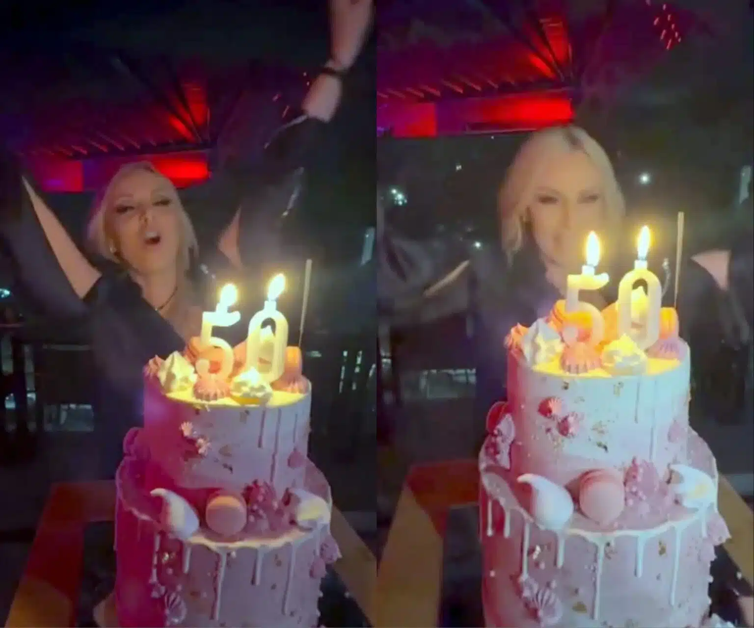 Όσο η τραγουδίστρια ήταν εν αναμονή να σβήσει τα κεριά, παιζόταν το τραγούδι του Βασίλη Παπακωνσταντίνου «Χρόνια Πολλά», και έδειχνε να απολαμβάνει τη στιγμή.