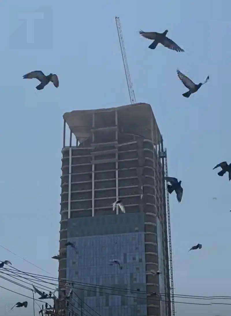 Στη παρακάτω φωτογραφία είναι ένα κοπάδι από περιστέρια που πετούν άτακτα προτού σειστεί και καταρρεύσει ένα πολυώροφο κτίριο στην Μπανγκόκ στον χθεσινό σεισμό των 7,7 Ρίχτερ.