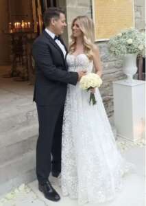 Μάλιστα, ο γαμπρός επέλεξε να φορέσει το ίδιο γαμπριάτικο κοστούμι, ενώ η ομοιότητα της νύφης με την Έλενα Ράπτη είναι απίστευτη, ενώ είχε και παρόμοιο wedding look.