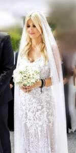 Ο γαμπρός ήταν ντυμένος ακριβώς το ίδιο με τον πρώτο γάμο του, με μαύρο κοστούμι και παπιγιόν, χωρίς να αποκλείεται το ενδεχόμενο να φόρεσε το ίδιο κοστούμι, ενώ η Χρύσα Παπαντωνίου φόρεσε δαντελένιο νυφικό και είχε τα μαλλιά της κυματιστά.