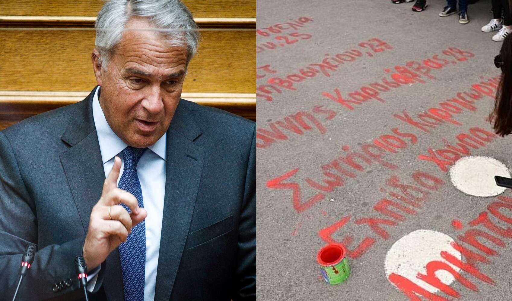 Τα ονόματα των 57 νεκρών, -που γράφτηκαν με κόκκινη μπογιά την ημέρα της πανεργατικής απεργίας Τετάρτη 28 Φεβρουαρίου και το βράδυ της ίδιας μέρας σβήστηκαν από συνεργεία του δήμου Αθηναίων, αλλά ξαναγράφτηκαν από φοιτητές την Πέμπτη, κατά τη διάρκεια του συλλαλητηρίου τους ενάντια στα ιδιωτικά Πανεπιστήμια- φαίνεται πως ενοχλούν τον υπουργό Επικρατείας.