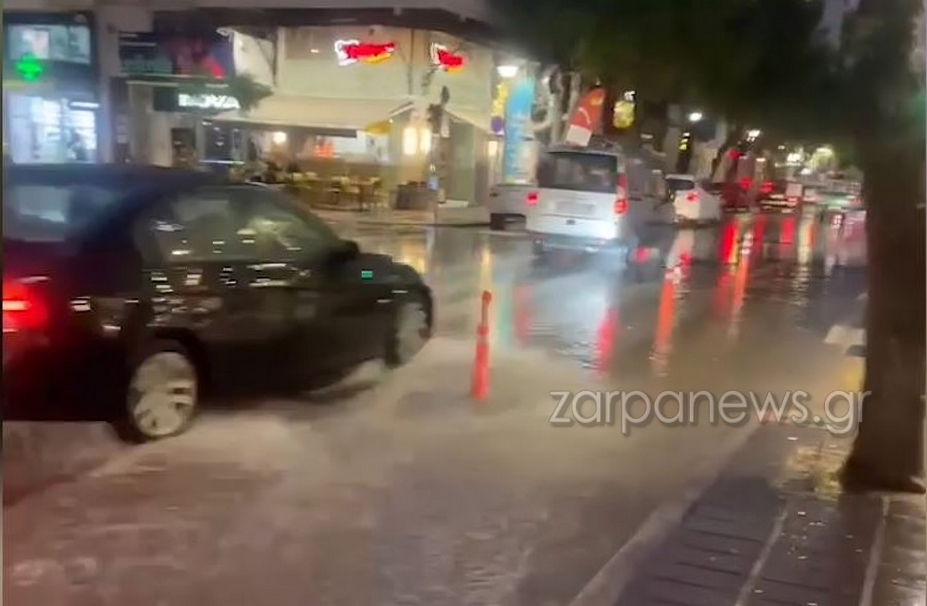 Σε ποτάμια μετατράπηκαν οι δρόμοι στο κέντρο των Χανίων από τη βροχή που σημειώθηκε το απόγευμα του Σαββάτου, λόγω της κακοκαιρίας Alexandros που χτυπά πολλές περιοχές της χώρας, ανάμεσά τους και την Κρήτη.