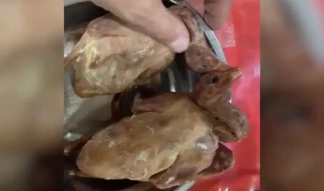 Ένα άλλο βίντεο δείχνει μια σακούλα γεμάτη με κρέας και αρκετά μπολ με ξεπουπουλιασμένα και μαγειρεμένα περιστέρια του δρόμου.