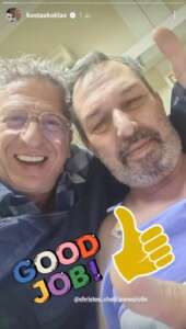 Μάλιστα, ο γνωστός ηθοποιός δημοσίευσε μια σέλφι φωτογραφία με τον Χρήστο Χατζηπαναγιώτη, ο οποίος φαίνεται να ξεπέρασε τον κίνδυνο με την υγεία του.