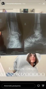 Δεν αποκάλυψε τίποτα παραπάνω για το τι ακριβώς τής συμβαίνει όμως φαίνεται να αντιμετωπίζει πρόβλημα με το πόδι της.