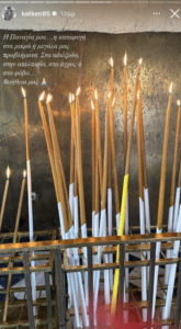 “Η Παναγία μου… η καταφυγή στα μικρά ή στα μεγάλα μας προβλήματα. Στα αδιέξοδα, στην απελπισία, στο άγχος ή στον φόβο… Βοήθειά μας” έγραψε η Κατερίνα Καινούργιου.