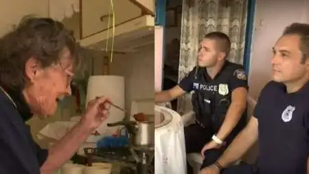 Οι αστυνομικοί επισκέφτηκαν το σπίτι της ηλικιωμένης κυρίας στη Φυλή προκειμένου να τη βοηθήσουν να απομακρυνθεί λόγω της φωτιάς που μαινόταν στην περιοχή, ενώ αυτή επέμενε να τους περιποιηθεί και να τους φτιάξει καφέ.