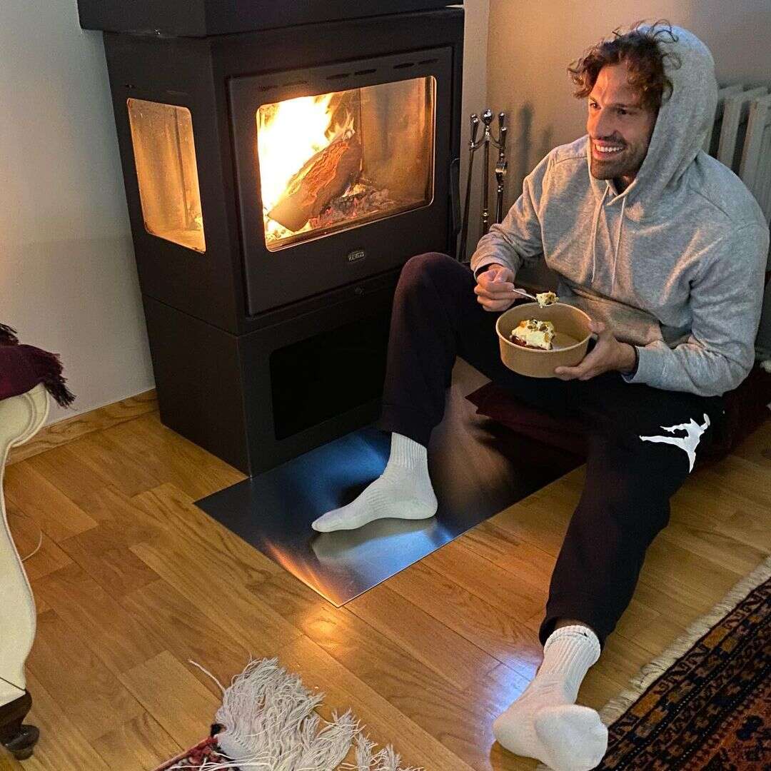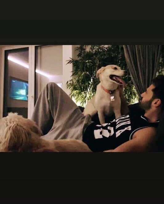 Επιπλέον στο σαλόνι του, υπάρχει ένας μεγάλος αναπαυτικός καναπές σε σκούρο χρώμα, ενώ το πάτωμα είναι καλυμμένο με ένα γκρι χαλί. Γενικότερα στο σπίτι κυριαρχούν ουδέτερα χρώματα, με μία ιδιαίτερη αγάπη στο λευκό, το οποίο «σπάει» με πιο σκούρες λεπτομέρειες.