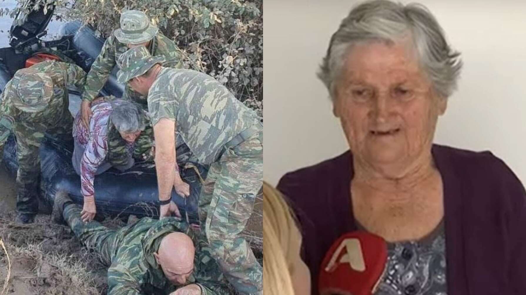 «Ήμασταν πέντε άτομα μέσα στη βάρκα. Δε φοβήθηκα πολύ. Έπεσαν λίγο τα νερά και είχε γλίστρα το ανάχωμα. Μου είπε το παιδί, ο πεζοναύτης, ότι θα πέσει κάτω για να τον πατήσω. Κι έπεσε. Μου έλεγε να μη φοβάμαι. Πάτησα με τα γόνατα πάνω του και τα άλλα παιδιά με κρατούσαν. Μου έλεγε συνέχεια να μη φοβάμαι. Με συνόδευσε μέχρι έξω, έως ότου ήρθε ένα άλλο αμάξι και με πήρε» είπε η κα Παρασκευή στην κάμερα του Alpha.