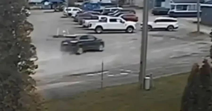 Βίντεο δείχνει το μπλε SUV της γυναίκας να περνάει με ταχύτητα μέσα από το πάρκινγκ του κλαμπ και να χτυπά τον πίσω τοίχο του κτιρίου.