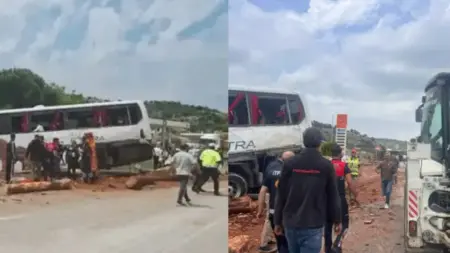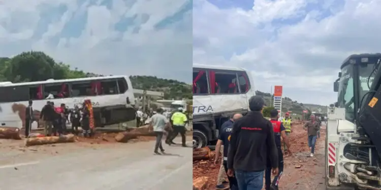 Στο πολύνεκρο τροχαίο ενεπλάκησαν ένα επιβατικό λεωφορείο, ένα φορτηγό που μετέφερε ξύλα και ένα αυτοκίνητο. Όπως μεταδίδουν τα τουρκικά μέσα, το αυτοκίνητο συγκρούστηκε πρώτα με το φορτηγό και στη συνέχεια το λεωφορείο, το οποίο μετέφερε 25 άτομα, έπεσε πάνω τους.