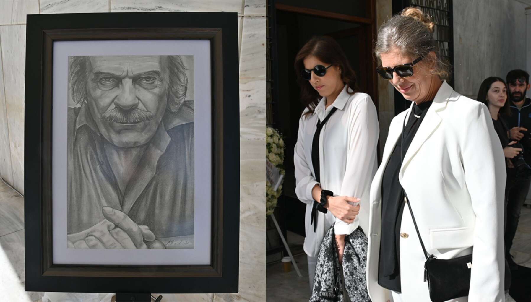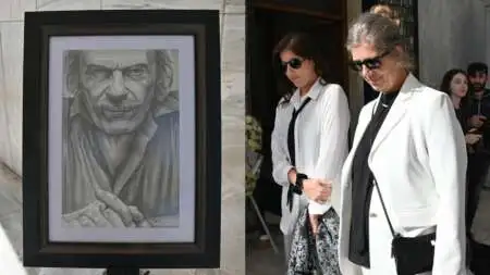 Τον Σπύρο Φωκά αποχαιρετούν, συγγενείς και φίλοι στο Α’ Νεκροταφείο Αθηνών. Πρώτες στην κηδεία του ηθοποιού έφτασαν η σύζυγός του Λίλιαν και η θετή κόρη του, Κωνσταντίνα, ντυμένες με λευκά σακάκια.