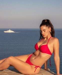 Πριν από λίγες ώρες, η γνωστή influencer-επιχειρηματίας φόρεσε το φλογερό κόκκινο μπικίνι της και πόζαρε στον φακό με θέα τη θάλασσα.