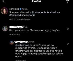 «Γιατί ρουφιέσαι το βλέπουμε ότι έχεις παχύνει», έγραψε μια follower κάτω από την ανάρτηση της Χριστίνας Μπόμπα.