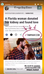 Σύμφωνα με το tampabay.com, όπως λέει η Hayley, μπορεί να έχασε έναν νεφρό αλλά βρήκε την αγάπη, και κυρίως χάρισε ζωή σε έναν συνάνθρωπο.