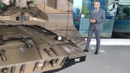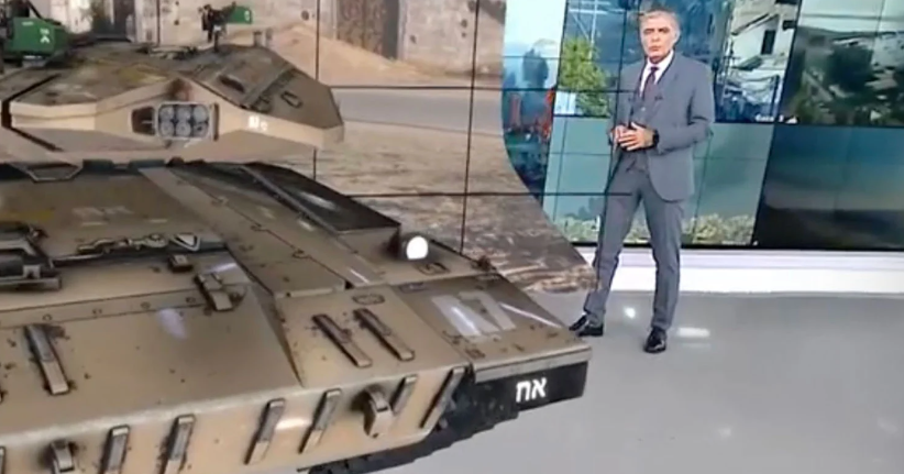 Στο σημερινό ρεπορτάζ του έδειξε το υπερσύγχρονο άρμα του ισραηλινού στρατού, το οποίο ξαφνικά βγήκε από την οθόνη και φρέναρε δίπλα στον παρουσιαστή. Όσοι τον παρακολουθούσαν, πίστεψαν ότι ο Ευαγγελάτος ο οποίος έχει μπει σε βάρκες και σε τάφους, στο κελί της Πισπιρίγκου ενώ ανέβηκε και στον καταπέλτη του Blue Horizon ήταν έτοιμος να μπει και στο άρμα που θα πολεμήσει τη Χαμάς.