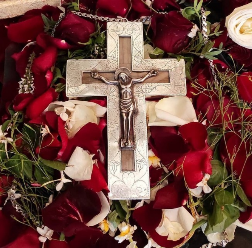 Την ευλογία του Τιμίου Σταυρού και την ευχή σας να έχουμε!!!”.