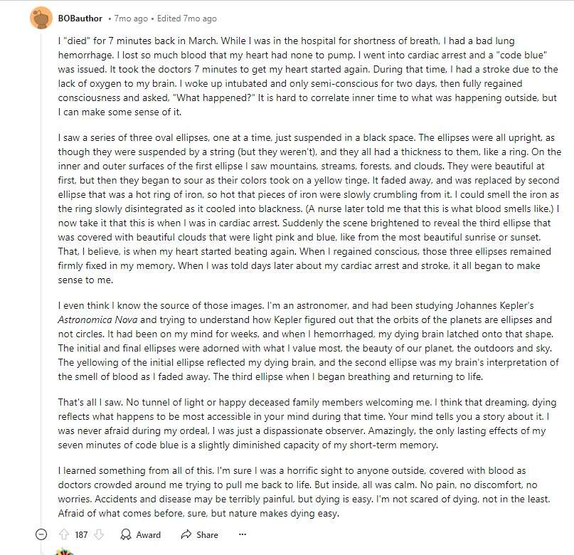 Η ανατριχιαστική μεταθανάτια εμπειρία ενός αστροφυσικού που σοκάρει. Την εκμυστηρεύθηκε στο Reddit και δεν είχε ούτε τούνελ, ούτε φώτα
