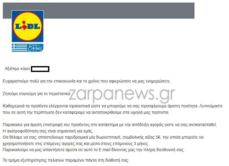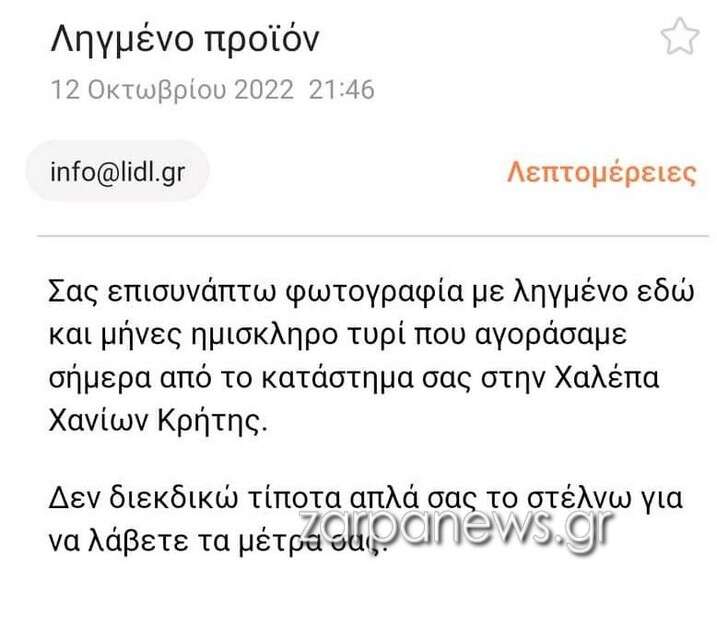 Ένας καθόλου τυχερός κρητικός από τα Χανιά αγόρασε τυρί από τη γνωστή αλυσίδα Lidl. Όταν γύρισε σπίτι του, διαπίστωσε πως ήταν ληγμένο. Έτσι πήρε την απόφαση να να ενημερώσει την εξυπηρέτηση πελατών για το συμβάν. Η απάντηση τους όμως ήταν άκρως εξοργιστική και ασυγχώρητη.