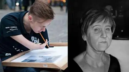 Οι περισσότεροι είναι πορτραίτα. Στην τέχνη μου δεν υπάρχει κάτι ξεχωριστό εκτός από ένα πράγμα – γεννήθηκα χωρίς χέρια.