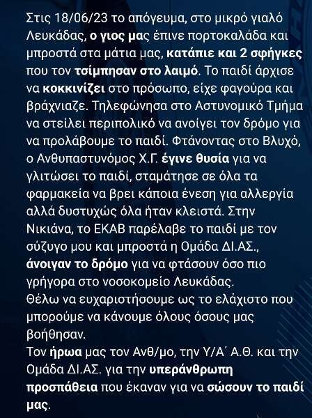 Τα λόγια του πατέρα του παιδιού και το ευχαριστώ στους αστυνομικούς