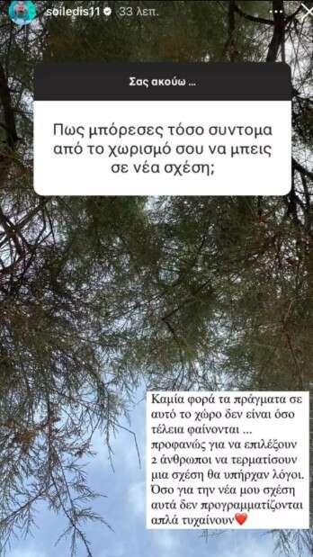Μάλιστα σε ερώτηση στο Instagram που τον ρώτησε για τη νέα του σχέση και πώς κατάφερε να προχωρήσω τόσο γρήγορα σε αυτή, του απάντησε.
