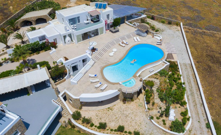 Όμως αυτά λίγη σημασία έχουν για την ακριβότερη βίλα της Μυκόνου, η οποία διαθέτει μια εντυπωσιακή πισίνα με θέα στο Αιγαίο, εκκλησάκι όπου τελούνται γάμοι αλλά και ελικοδρόμιο. Το τελευταίο υπάρχει για τους πελάτες που δεν επιθυμούν καθόλου να τους δουν και έρχονται με ελικόπτερο για να απολαύσουν τις ανέσεις του συγκροτήματος.