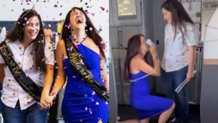 Η Veronica γονάτισε, έβγαλε το μονόπετρο το πέρασε στο χέρι της συντρόφου της και της ζήτησε να την παντρευτεί. Οι επιβάτες ξέσπασαν σε χειροκροτήματα και ανέμιζαν βεντάλιες στα χρώματα της ΛΟΑΤΚΙ κοινότητας.