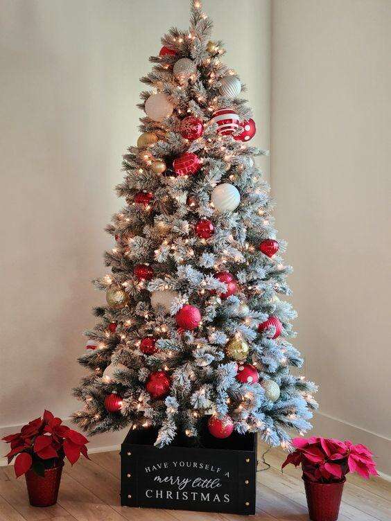 Ακόμη κι αν δεν έχεις λευκό δέντρο όμως, μπορείς να το κάνεις να δείξει λευκό κάνοντάς το με έναν εύκολο τρόπο να μοιάζει χιονισμένο. Κι εκτός αυτού, ακόμη και στα κλασικά πράσινα δέντρα μπορείς να παίξεις σε κάθε περίπτωση με τα κόκκινα και λευκά στολίδια και γιρλάντες. Πάλι εντός τάσης θα είσαι.